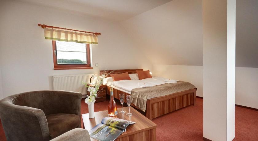 Description Golf&Wellness Resort Alfrédov: Situated in Alfrédov, 41 km from Teplá Monastery, Golf&Wellness Resort Alfrédov features accommodation with a fitness centre, free private parking, a garden and a shared lounge. Boasting room service, this property also welcomes guests with a restaurant and a terrace. The hotel also offers free WiFi as well as a paid airport shuttle service. Some rooms include a kitchenette with a fridge. The hotel offers a children's playground... [read more] Click to see full description