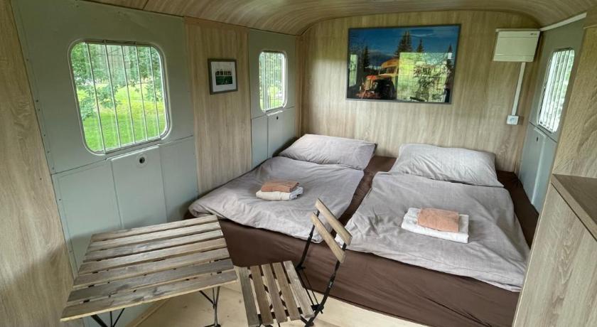 Description Residence Safari Resort - Magic Bus: Offering a garden and garden view, Residence Safari Resort - Magic Bus is situated in Borovany, 34 km from Castle Český Krumlov and 20 km from Main Bus Station České Budějovice. The luxury tent, set in a building dating from 2022, is 20 km from Main Railway Station České Budějovice and 21 km from Black Tower. Free WiFi is available throughout the property and Přemysl Otakar II Square is 21 km away. Towels and bed linen are available in the luxury tent... [read more] Click to see full description