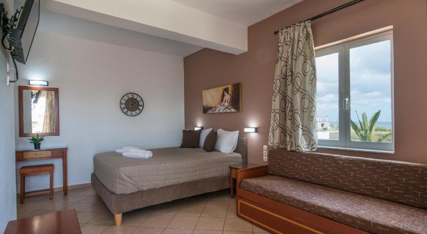 Description Castro Beach Hotel: Castro Beach Hotel is located just metres from Maleme beach in Crete. It features an outdoor swimming pool and children’s pool. The accommodation offers a terrace or balcony with garden, pool and sea views.Free WiFi is available. All the rooms and studios at Castro Beach are air conditioned. They include a satellite TV, safety deposit box and refrigerator. Some units are equipped with a kitchenette and dining area. Breakfast is prepared daily. Guests can enjoy a meal at the property restaurant... [read more] Click to see full description