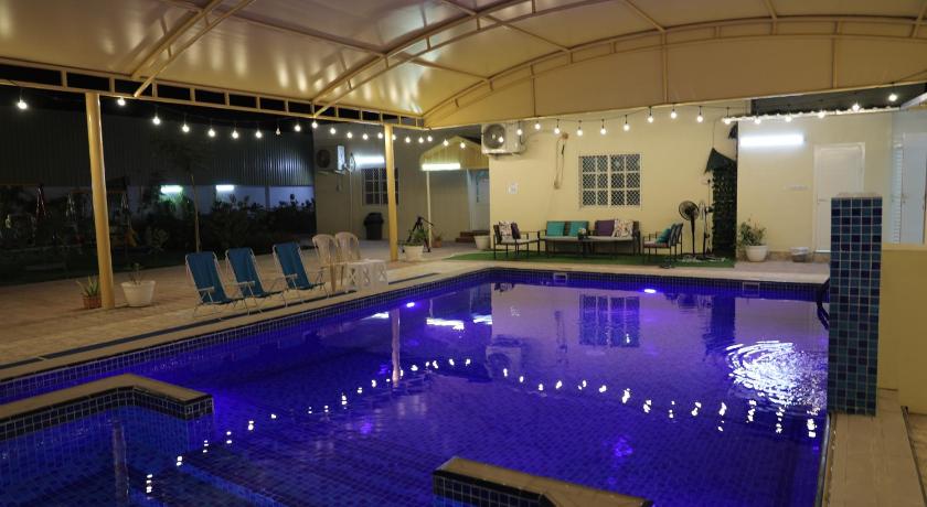 Description استراحة زمردة: Featuring air-conditioned accommodation with a private pool, استراحة زمردة is located in Khasab. The property features garden views. The holiday home is composed of 3 bedrooms, a fully equipped kitchen, and 3 bathrooms. A flat-screen TV is provided. The accommodation is non-smoking. The nearest airport is Khasab Airport, 2 km from the holiday home... [read more] Click to see full description