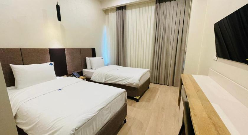 Description Dedeman Erbil Hotel City Center: This 5-star hotel in Erbil Offers modern accommodation with free Wi-Fi.It features 1 restaurants 2 bars and heated indoor pool.Erbil international Airport is 15 minutes away by car. Furnished with a modern décor,the air-conditioned units at Dedeman Hotel City Center include a minibar and flat-screen satellite TV.The marble bathroom is fitted with a bath shower and free toiletries. The dining in at the elegant Turkuaz Restaurant Lobby Bar provides a relaxed atmosphere... [read more] Click to see full description