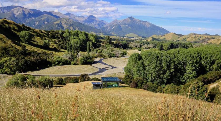 Description Manakau PurePod: Manakau PurePod is a luxurious glass eco-cabin set in a stunning location, a 20-minute drive away from Kaikoura, offering guests mountain, bushland and farmland views. This holiday home features sliding doors on all three glassed sides, a glass floor and a glass ceiling, perfect for star-gazing. You can relax on the deck and enjoy your own isolated slice of the New Zealand landscape with views over the mountains, river and bushland surrounds. The bathroom offers a shower with stunning views... [read more] Click to see full description