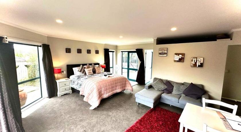 Description Observation Guest Suite: Set in Paraparaumu in the Wellington region, Observation Guest Suite offers accommodation with free WiFi and free private parking, as well as access to a hot tub. This guest house provides a garden as well as a terrace. The 1-bedroom guest house is fitted with a living room with a flat-screen TV, a fully equipped kitchenette with a microwave and toaster, and 1 bathroom with walk-in shower. Towels and bed linen are featured in the guest house. The property has an outdoor dining area... [read more] Click to see full description